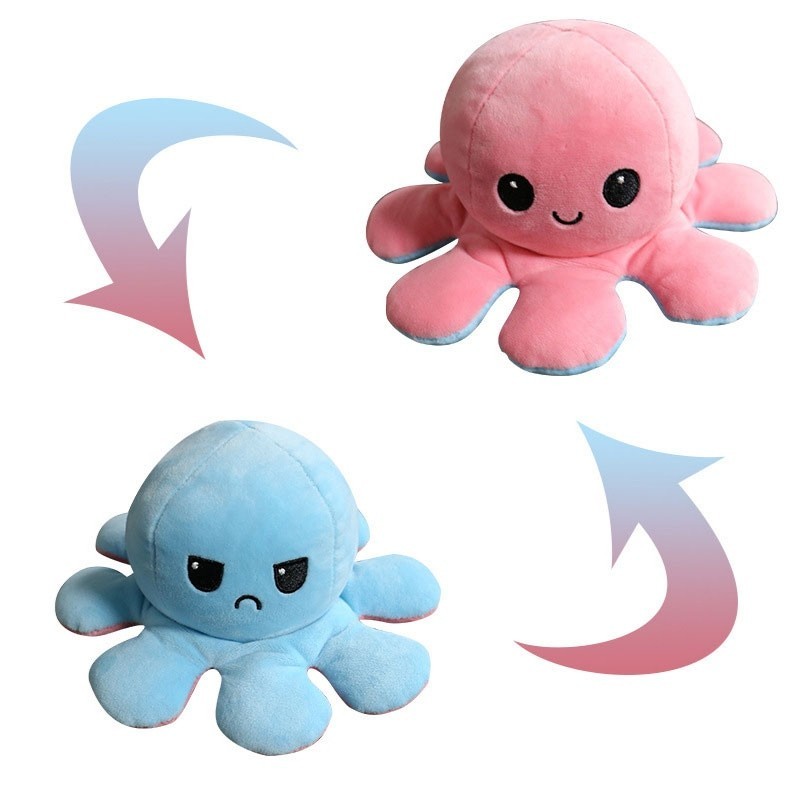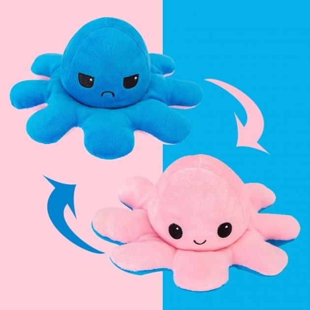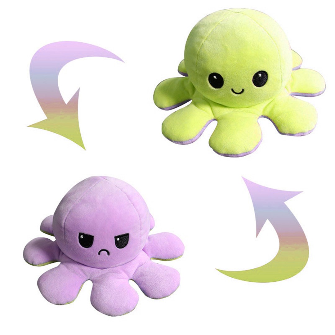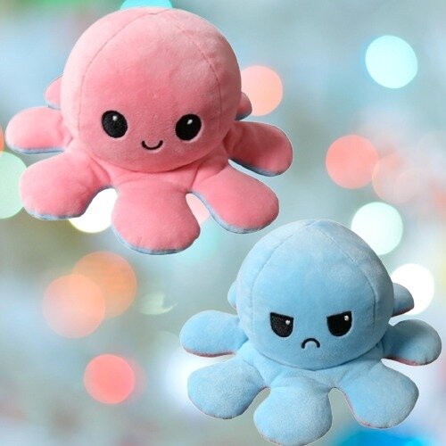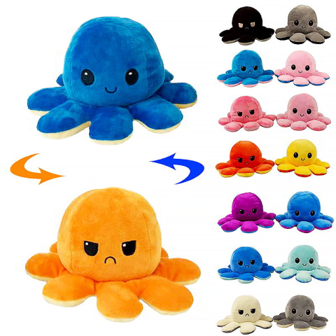 Двосторонній восьминіг змусить усміхатися хлопчика , дівчинку і навіть дорослу людину! Це м'які іграшки, які легким рухом перетворюються з одного кольору на інший і відповідно змінюють емоції. У нас представлені чотири барвисті кольори для демонстрації настрій господаря. Постав його на робочий стіл, поклади на ліжко і дай зрозуміти оточуючим, веселий ти чи злий!