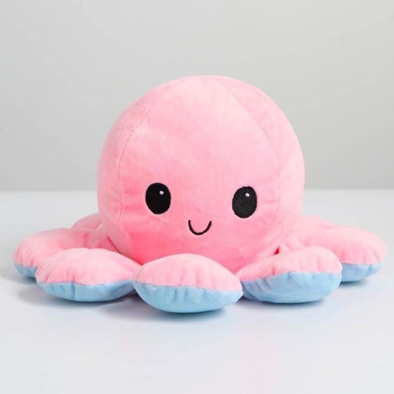 Двосторонній восьминіг змусить усміхатися хлопчика , дівчинку і навіть дорослу людину! Це м'які іграшки, які легким рухом перетворюються з одного кольору на інший і відповідно змінюють емоції. У нас представлені чотири барвисті кольори для демонстрації настрій господаря. Постав його на робочий стіл, поклади на ліжко і дай зрозуміти оточуючим, веселий ти чи злий!