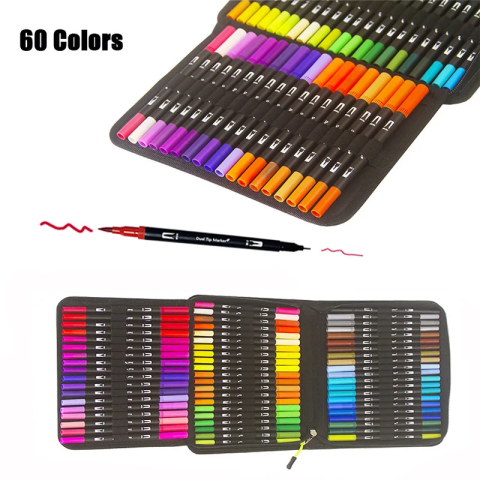 Акварельні маркери-пензлі, 60 кольорів, подвійний наконечник, художні маркери, фломастери-скетчбуки для малювання