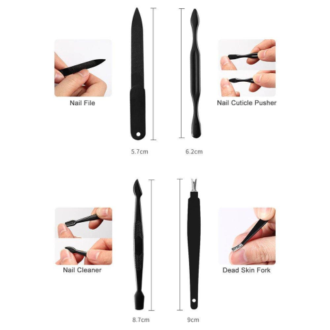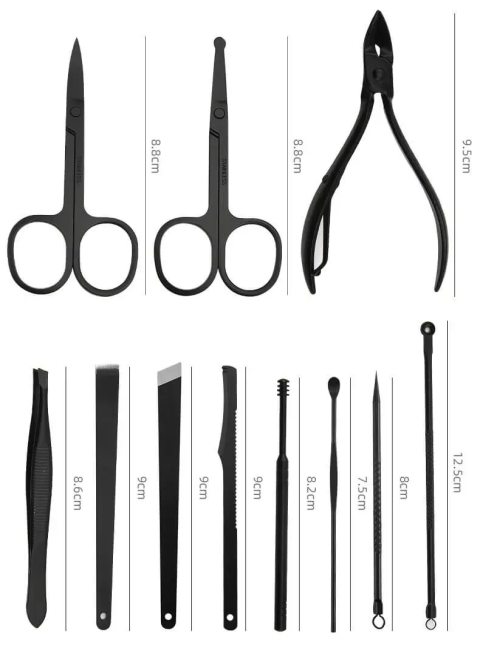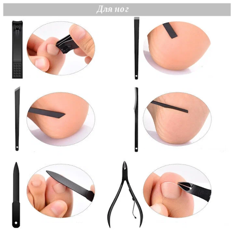 У ньому є необхідні інструменти для очищення, підрізування та підпилювання нігтів, надання їм потрібної форми та красивого блиску, турботи про доглянутий зовнішній вигляд кутикули та навколонігтьового валика.