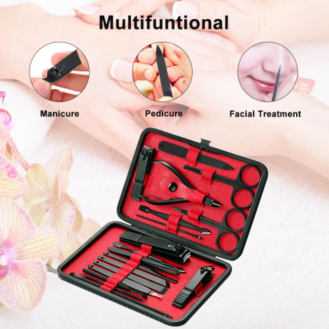 Манікюрний педикюрний набір складається із 18 предметів, виготовлених із міцної медичної сталі.