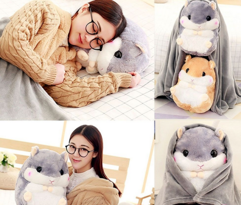 Чарівний хом'як з теплим пледом, який акуратно ховається всередину іграшки, стане приємним подарунком на будь-яке свято.