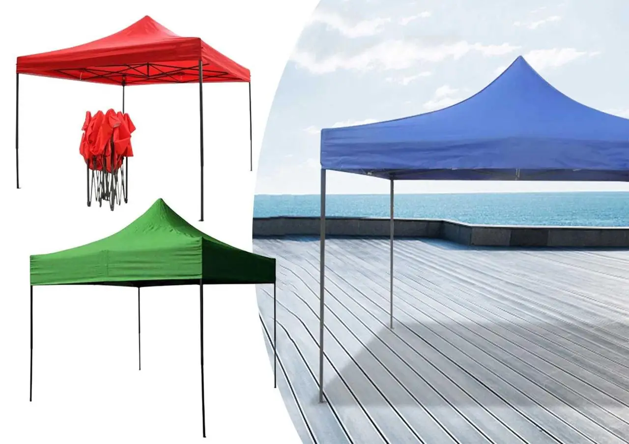 Щільна, прогумована тканина, на куточках купола двошарова тканина, що запобігає її протирання, не допускає проникнення води, сонця.