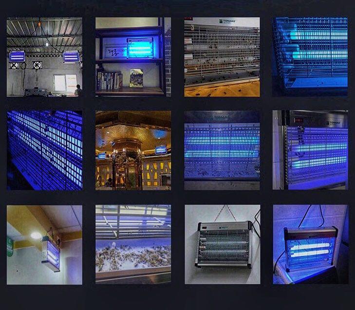 Приваблює комах світлом двох спеціальних інсектицидних ультрафіолетових ламп. На шляху до ламп комахи неминуче наштовхуються на сітчасту перешкоду під електричною напругою 3000В. Саме воно й убиває шкідників, що падають на піддон.