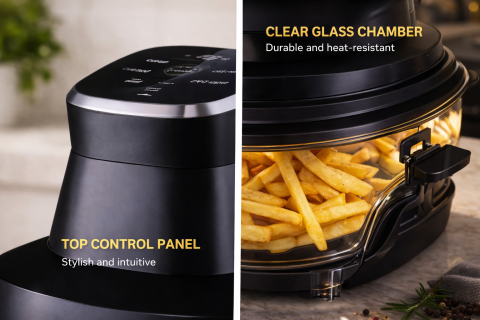 Сучасна аерофрітюрниця Domotec MS-3227 – це ідеальне рішення для швидкого та корисного приготування улюблених страв без зайвого жиру. Завдяки потужності та технології гарячого повітря ви отримуєте хрумку скоринку та соковиту середину без використання олії.