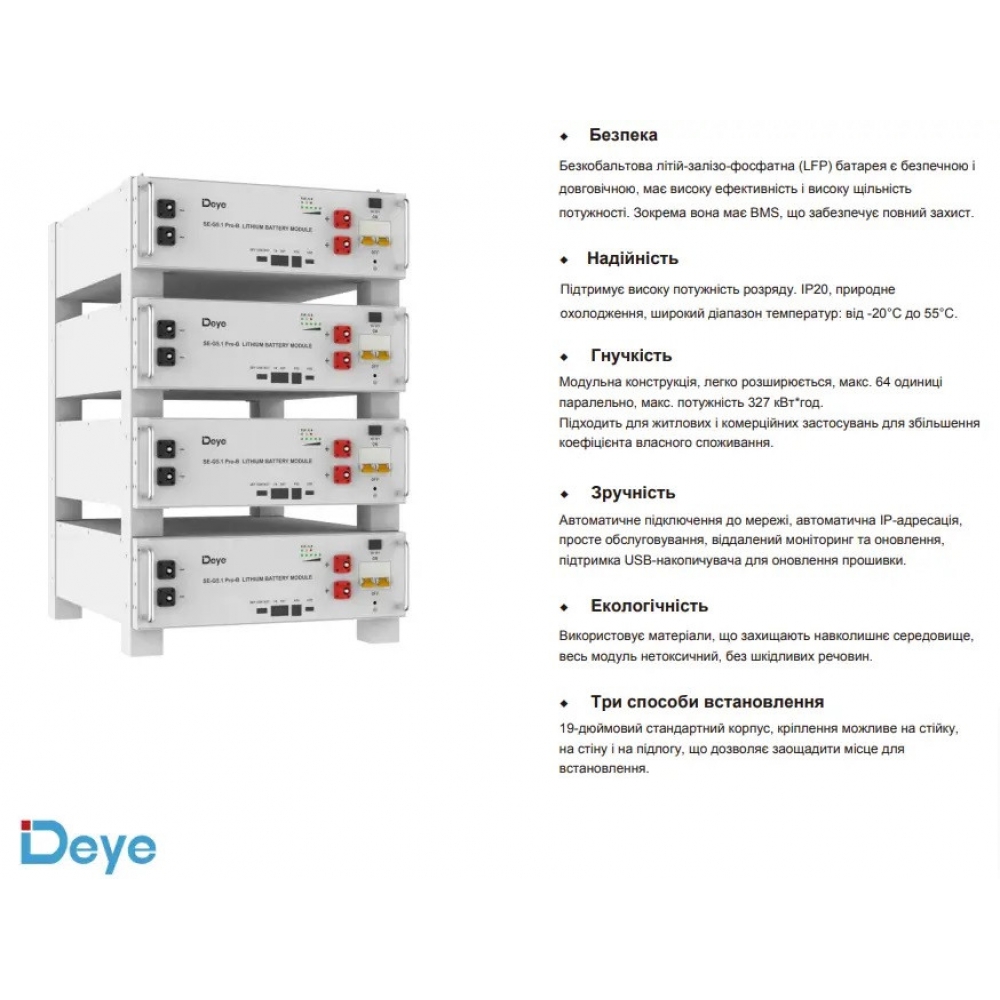 Акумуляторна батарея Deye SE-G5.3Pro-B (LiFePO4 51,2V 100Ah)
