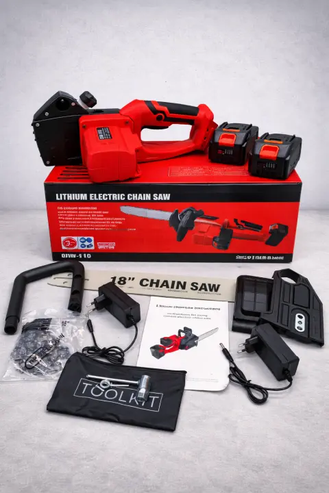 Акумуляторна безщіткова ланцюгова пилка 18 дюймів 45 см, 2 АКБ, 2 зарядні пристрої RED