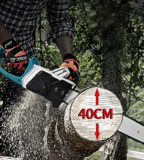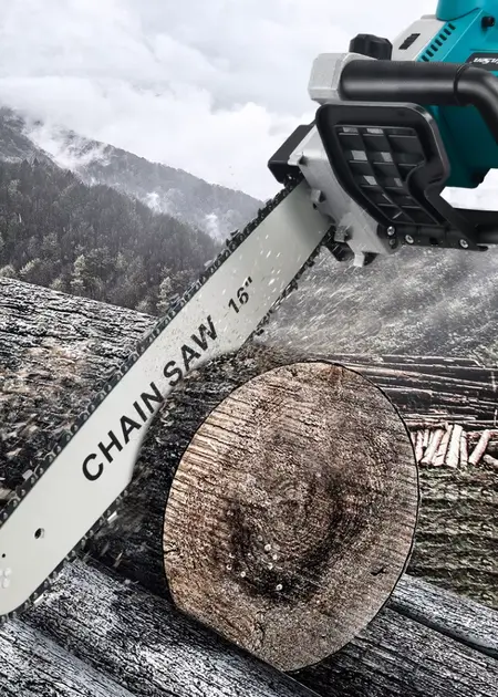 Легко впорайтеся з розпилюванням дров, обрізанням дерев та іншими завданнями за допомогою акумуляторної ланцюгової пилки Chain Saw 16”.