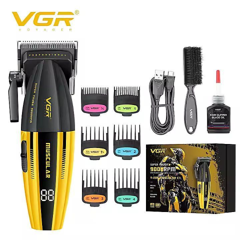 Машинка для стрижки волосся VGR V-285 Професійна бездротова з LED-дисплеєм, 9000 об/хв, акумулятор 2000 mAh, 6 насадок, подарункова упаковка