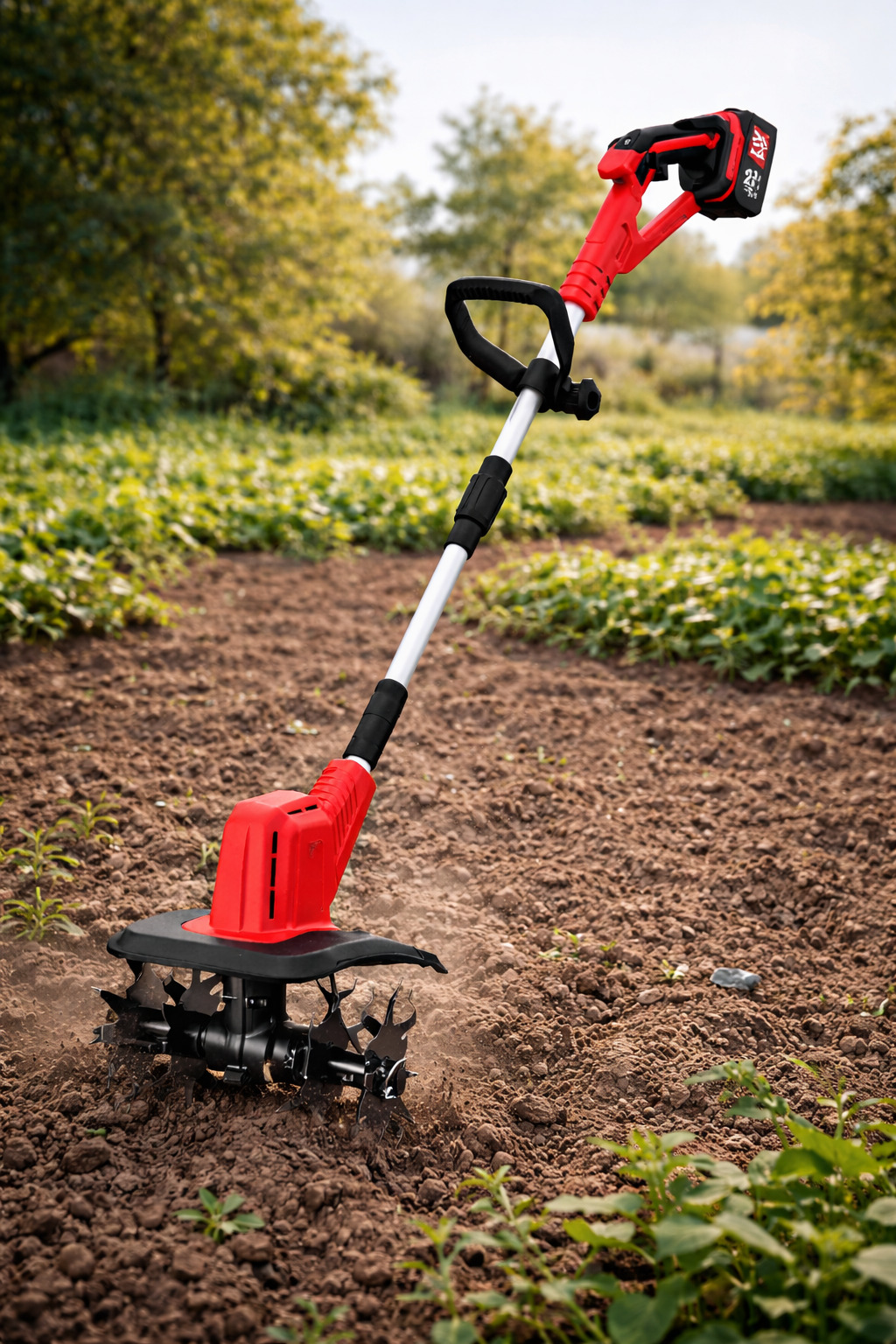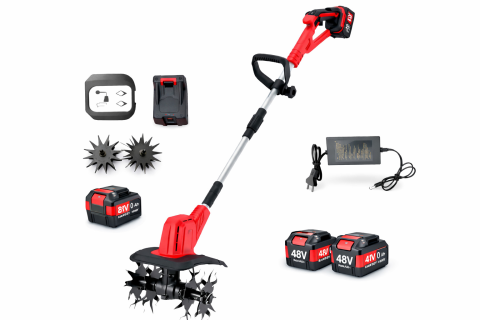 Акумуляторний культиватор 48V ручний для міста, теплиць та клумб, 2 АКБ Червоний