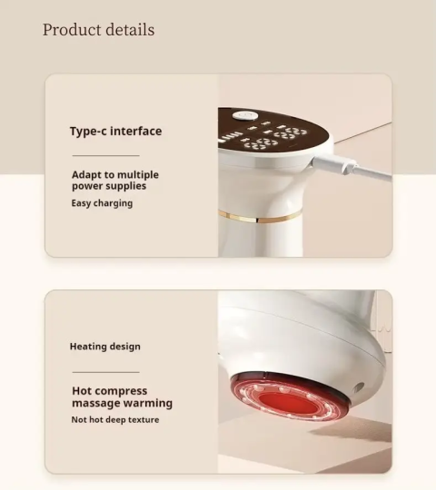 Завдяки комбінації вакуумного масажу та інфрачервоного нагріву, прилад активізує кровообіг, прискорює синтез колагену, а також сприяє лімфодренажу та виведенню токсинів. Зручний дизайн, ергономічна форма та простота управління роблять його ідеальним вибором для повсякденного використання.