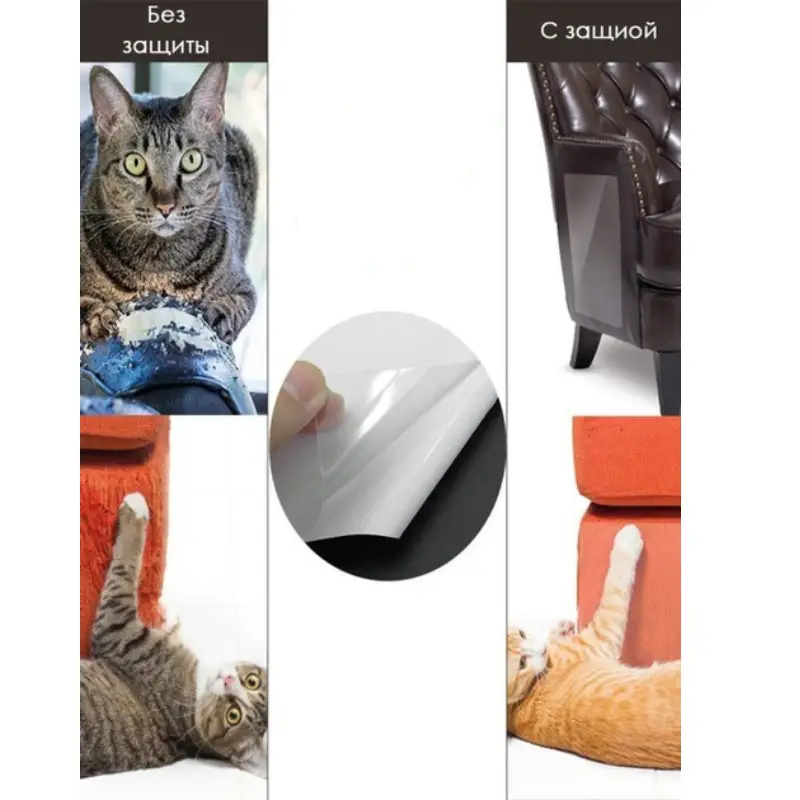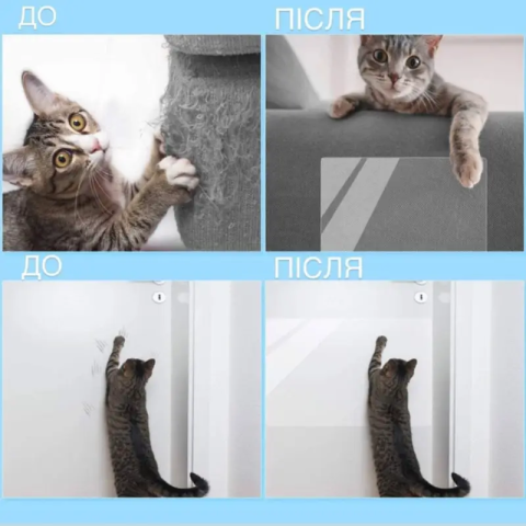 Прозора захисна плівка призначена для того, щоб захистити м'які меблі від кігтів домашніх тварин. Вона ефективно запобігає появі подряпин та потертостей, зберігаючи оббивку у відмінному стані. Такий спосіб захисту абсолютно безпечний для котів та собак, не завдає їм дискомфорту. У комплект входить 1 аркуш плівки розміром 30×45 см, що дозволяє надійно закрити вразливу ділянку меблів.