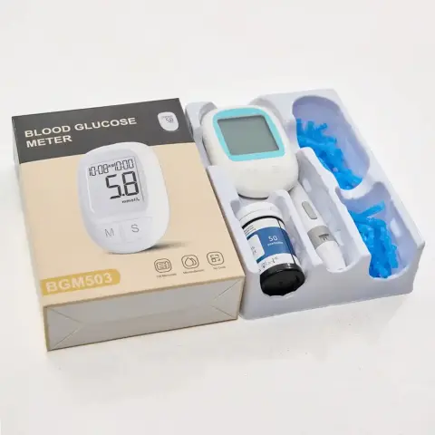 Глюкометр BGM503 – ваш надійний помічник для точного та оперативного вимірювання рівня глюкози у крові прямо у вас вдома. Цей сучасний прилад розроблений для максимальної зручності: не вимагає додаткового кодування тест-смужок, що робить процес вимірювання простим та безпечним навіть для новачків. Завдяки компактним розмірам BGM503 легко вміщується у сумці, дозволяючи вам контролювати своє здоров'я у будь-якій поїздці. Інтуїтивно зрозумілий інтерфейс робить його доступним для користувачів різного віку. Продумана конструкція та автоматична робота гарантують, що ви зможете легко вимірювати рівень цукру.