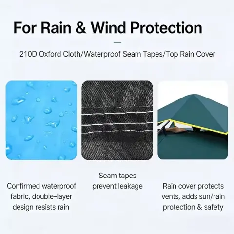 Вітростійкість: Ефективний – намет залишається стабільним у вітряну погоду.