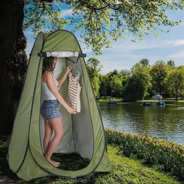 Портативний намет з вікнами відмінно підійде для використання в похідних умовах як душ, туалет, роздягальня на кемпінгу, рибальське укриття, укриття для фотографа, складу похідного інвентарю.