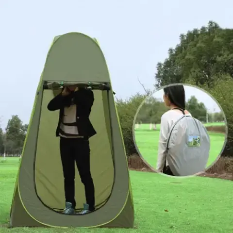 Надлегка конструкція туристичного душу туалету дозволяє легко транспортувати його за допомогою сумки, що додається, для перенесення намету.