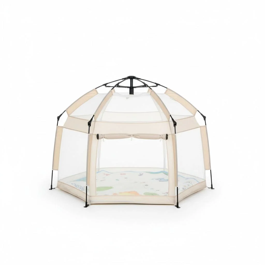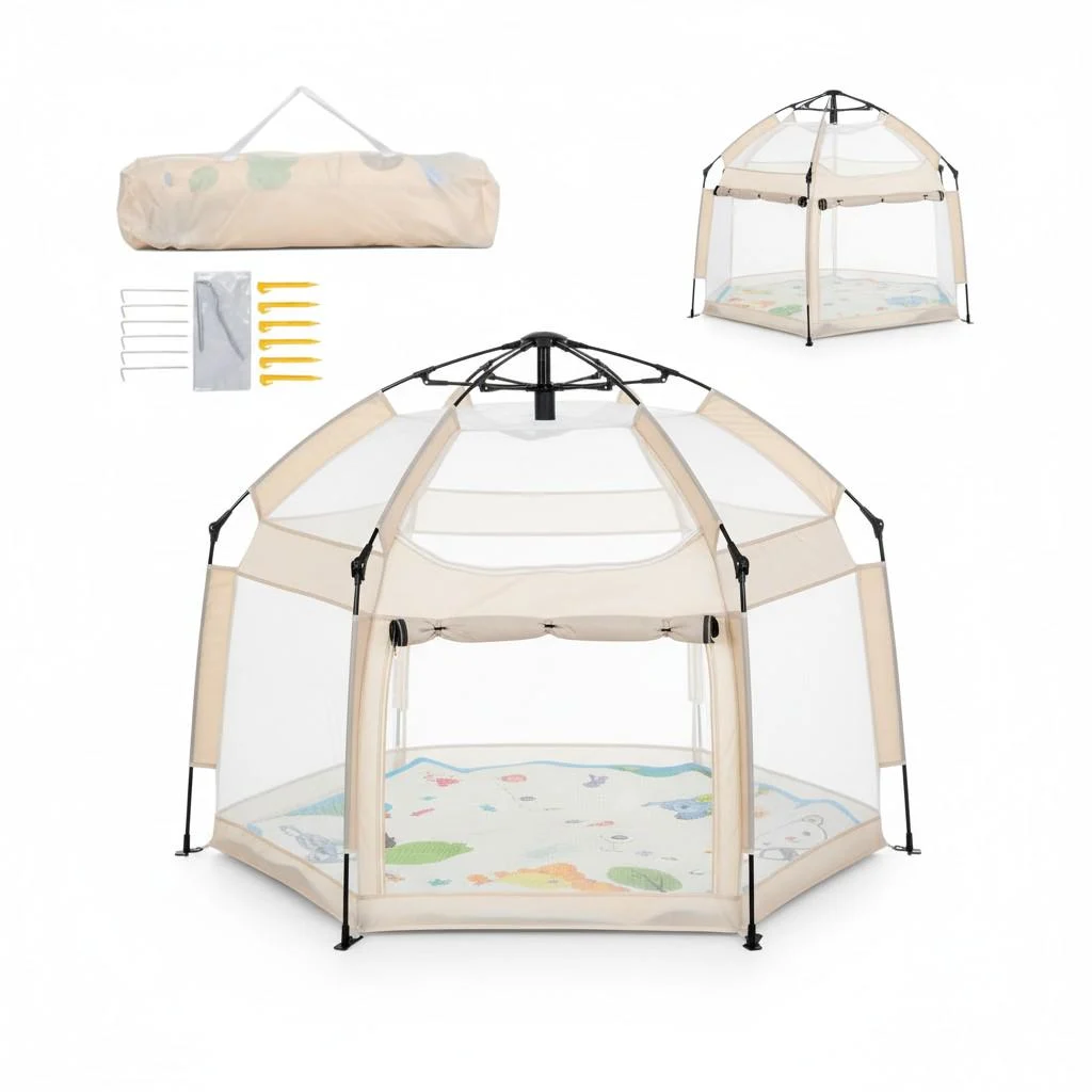 Зручна конструкція розміром 146x127x110 см забезпечує достатньо місця для ігор, повзання та відпочинку. Всі стіни виконані з сітки, що дихає, що гарантує відмінну вентиляцію і повний огляд з усіх боків. Широкий вхід на блискавці дозволяє малюкові самостійно заходити та виходити.
