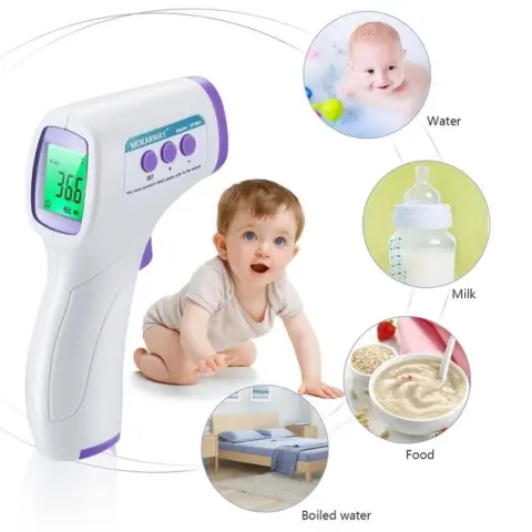 Безконтактний інфрачервоний термометр здійснює вимірювання температури тіла та навколишнього середовища, а також предметів всього за одну секунду на відстані від 3 до 5 см. З його допомогою можна швидко виміряти температуру тіла людини, температуру рідини (наприклад, дитяче харчування або ванну), температуру їжі та будь-яких предметів.