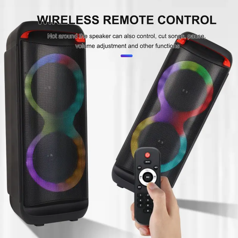 Професійна стереосистема для незабутніх вечірок. Потужна Bluetooth-колонка з чистим звуком, глибоким басом і динамічним RGB-підсвічуванням, що синхронізується з музикою. Два мікрофони для караоке. Вихідна потужність – 40 Вт, заряджання TYPE-C. Міцний корпус, зручні ручки та колеса для пересування. Компактний розмір для будинку, вулиці чи дачі. Підключення через Bluetooth, флешку або TF карту.
