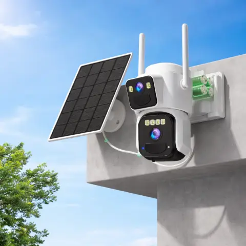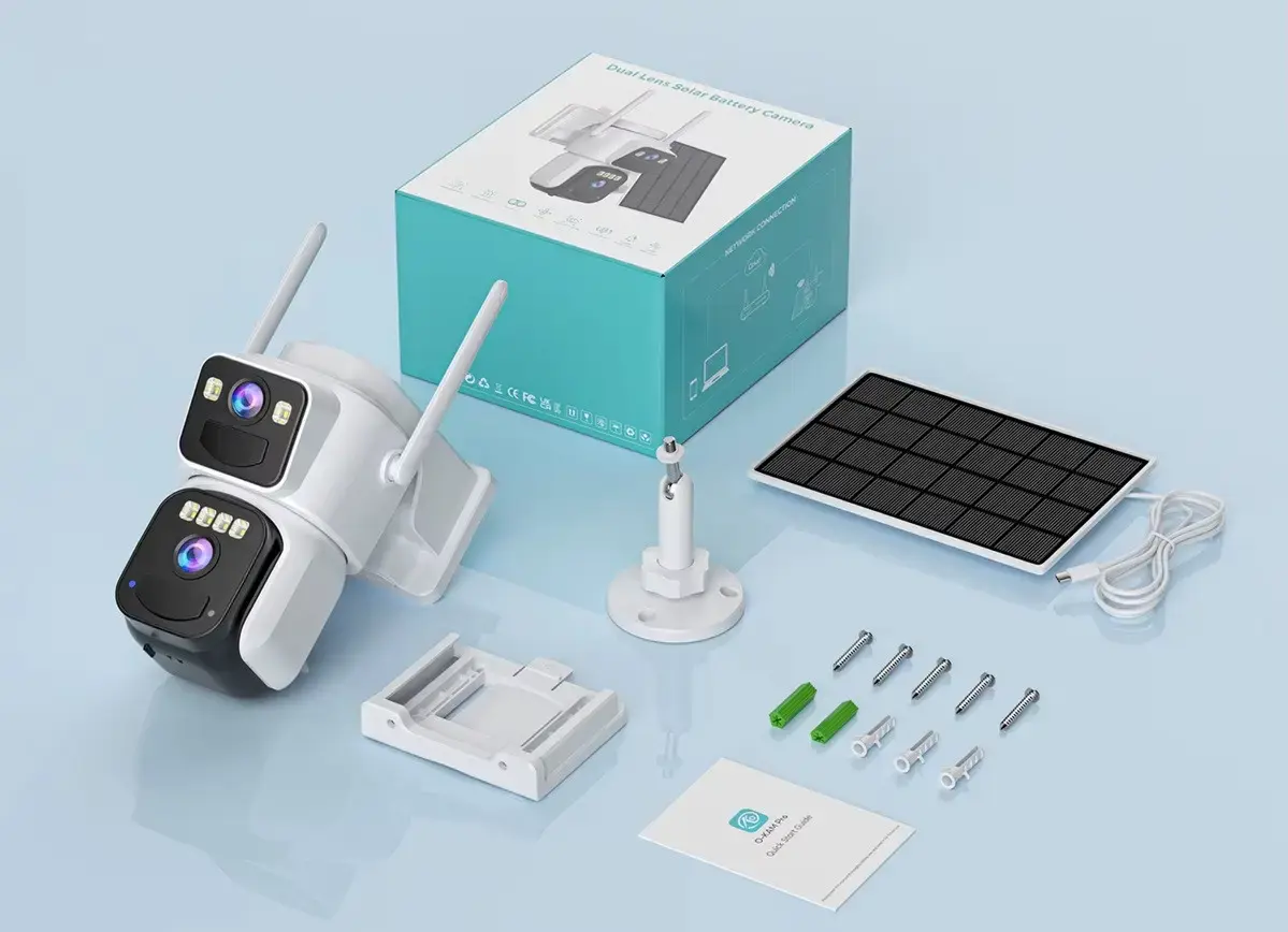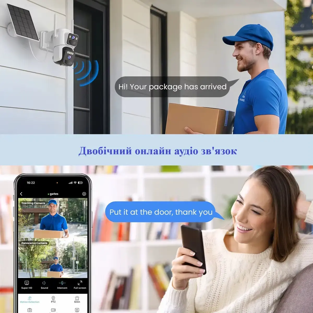 Поворотная WiFi камера 2 линзы 4к / Видеокамера с солнечной панелью 8mp