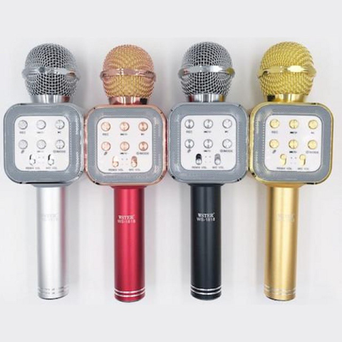 Ручну караоке систему WS-1818 - заслужено можна назвати ультра мобільною! Мікрофон має вбудований акумулятор та динаміки, а значить що він не "прив'язаний" ні до розетки, ні до додаткової акустики. Wireless Microphone відмінно підійде для домашнього використання та для професійної експлуатації провідним на свято/вечірку або іншу урочистість. Оцінена багатьма покупцями портативна караоке система Wster WS-1818 - одна з кращих моделей по набору функцій. Від популярного мікрофона Wster WS-858 модель WS1818 відрізняється лише дизайном, у якому циліндричний модуль замінений на кубічний, якісно та функціонально залишаючись на тій же топовій висоті.