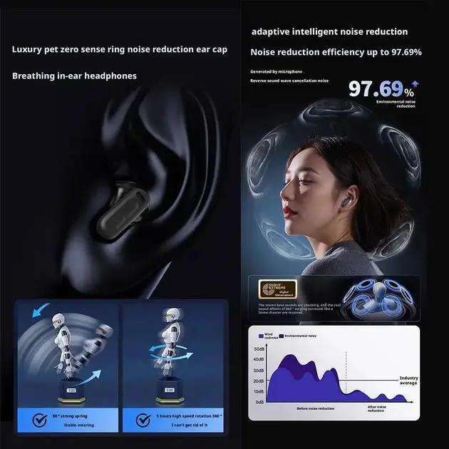 Професійне шумозаглушення Оснащений передовою технологією шумозаглушення, він зменшує до 97,69% шуму навколишнього середовища і блокує звуки, що заважають, з вражаючим ефектом шумозаглушення 48 дБ, дозволяючи вам поринути в тихий світ. Незалежно від того, чи перебуваєте ви на переповненій вулиці, в аеропорту або громадському транспорті, ви отримаєте високоякісний переклад в будь-яких умовах.