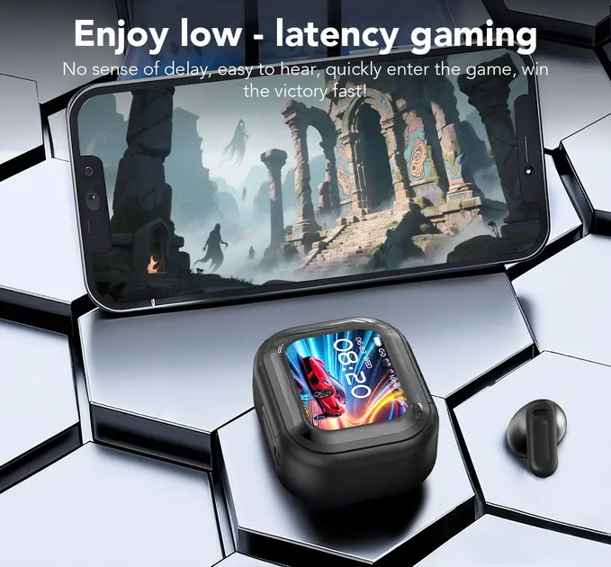 Сенсорний екран Оснащений сенсорним екраном високої роздільної здатності для легкого керування, що дозволяє легко керувати музикою або настроювати параметри. Інтуїтивно зрозумілий, плавний сенсорний інтерфейс робить його зручним та зручним у використанні. Ви можете встановлювати будильники, настроювати режими шумозаглушення залежно від вашого оточення або грати в ігри для зняття стресу під час поїздок на роботу, щоб розслабитись. Багатофункціональний дизайн поєднує зручність та універсальність у стильному та компактному пристрої.