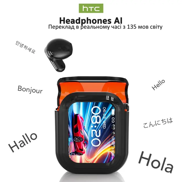 Бездротові навушники HTC NE20 AI з функцією переведення в режимі реального часу, Bluetooth V6.0 iPhone/Android, Black