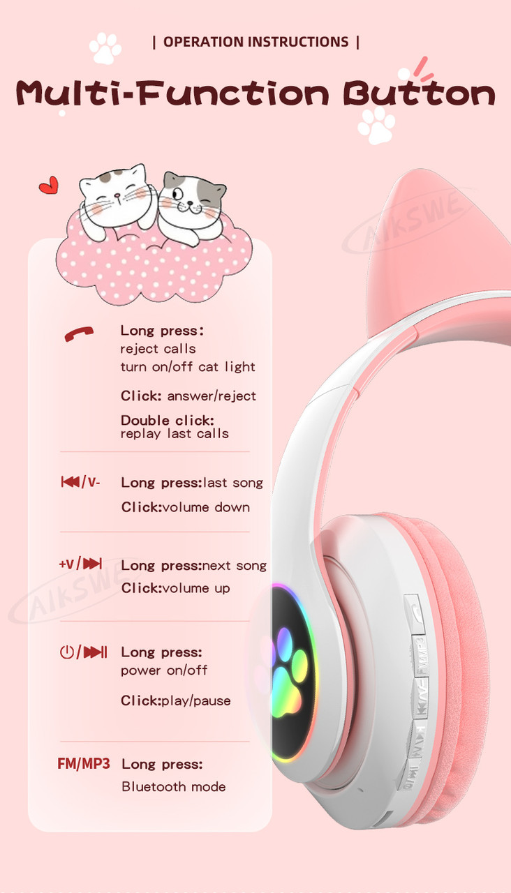 Рожеві Бездротові навушники з котячими вушками Cat VZV-23M