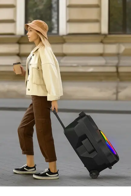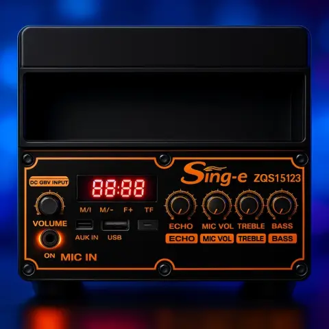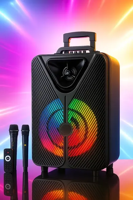 Це потужна мобільна колонка, призначена для використання на вулиці, для вечірок, заходів, а також аматорського караоке завдяки наявності мікрофона та його підтримки. Великий розмір динаміка забезпечує гучний та якісний звук, а яскраві LED ефекти надають видовищності. Зручний візок-конструкція дозволяє легко переміщати стовпчик, а широкий набір інтерфейсів робить його універсальним для відтворення музики з різних джерел.