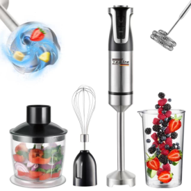 Блендер виконує безліч завдань завдяки змінним насадкам. Віночок, що входить у комплект, відмінно підходить для збивання коктейлів, мусів та безе. Стандартна блендерна насадка відмінно змішує та збиває супи-пюре, однорідні соуси та підливи. Людям які стежать за своїм харчуванням так само буде корисним придбати цей прилад на своїй кухні, адже що може бути краще за свіжу смузу з ранку.