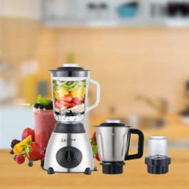 Кухонний блендер – це багатофункціональний прилад, що ідеально підходить для приготування смузи, супів, соусів та інших страв. Він оснащений зручною чашею із подрібнювальним ножем, на яку можна встановлювати ручний блендер. У комплект також входить склянка, що ідеально підходить для змішування напоїв. Всі ножі виготовлені із міцної нержавіючої сталі, а корпус виконаний із надійного пластику.