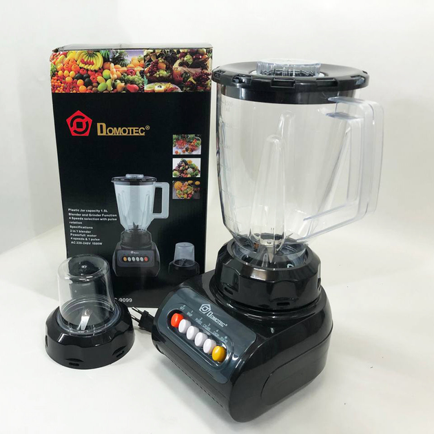 Блендер Domotec MS 9099 стаціонарний багатофункціональний – дозволяє подрібнити та змішати будь-які продукти. Але головною особливістю цього блендера Domotec MS 9099 є можливість подрібнення кави. Для цього в комплекті передбачена спеціальна насадка-кавомолка.