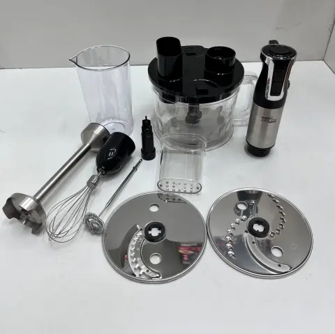 Універсальність: Широкий набір насадок для різних кулінарних завдань зробити цей блендер вашим незамінним помічником від нарізки овочів до приготування пюре та соусів.