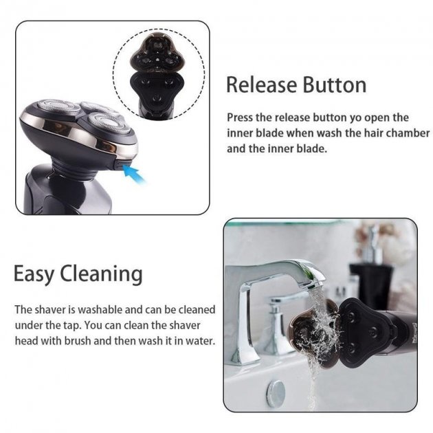 У даній моделі є вбудований тример, 3 плаваючі голячі гоління, які максимально щільно стикаються зі шкірою обличчя,