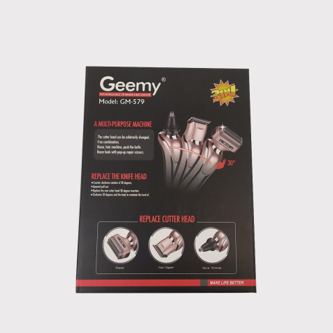 Бритва триммер 3 в 1 Geemy GM-579 на акумуляторі універсальна з насадками для стрижки бороди носа вух