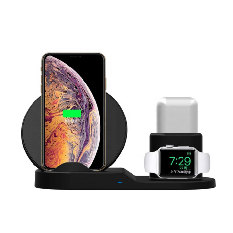 Швидка бездротова зарядка підставка Qi Wireless Fast Charger 3 в 1 для телефону (док станція), чорна