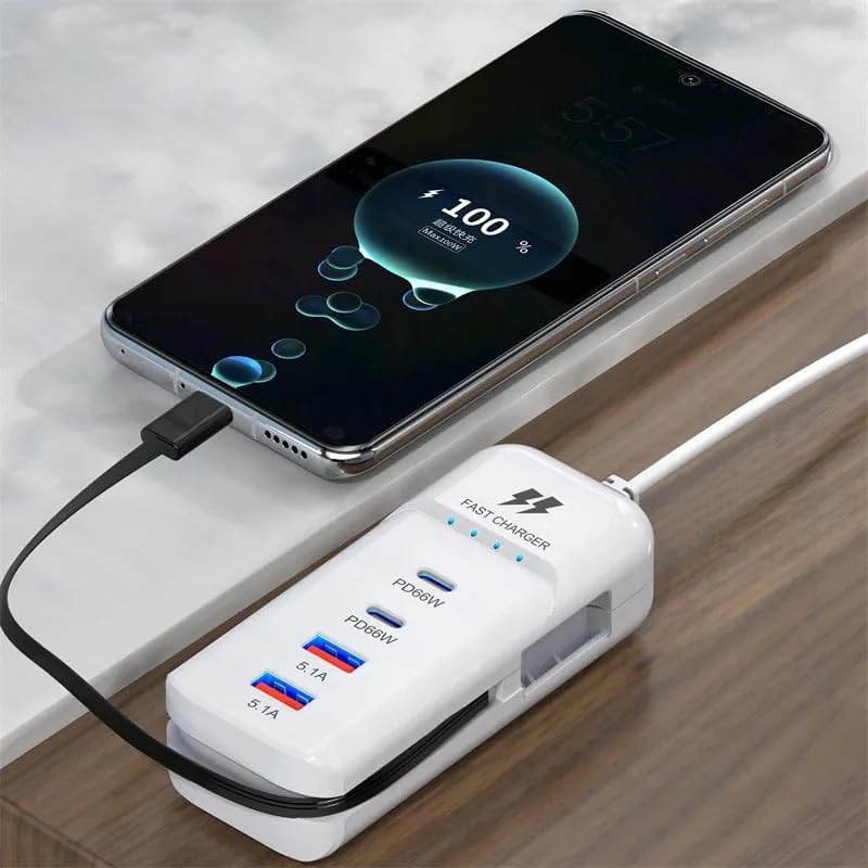 Швидкий зарядний пристрій 66 Вт, 2 USB-порти та 2 PD-порти, Type-C / Компактна, багатофункціональна, потужна зарядна станція