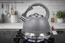 Завдяки двошаровому покриттю чайник при зіткненні з ним не обпалюється. Цілком безпечний харчовий матеріал дозволяє кип'ятити воду навіть для немовлят.