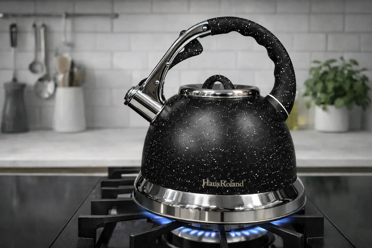 Чайник із гранітним покриттям зі свистком Haus Roland HR 704-5 3,5 л із нержавіючої сталі Чорний