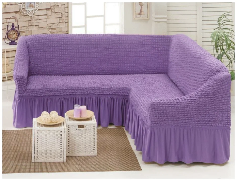Бузковий Турецька накидка на кутовий диван з оборкою, натяжний чохол на диван.
