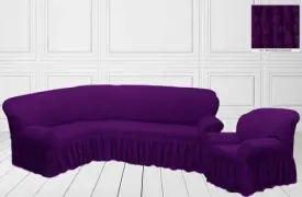 Антрацит Турецька накидка на кутовий диван з оборкою, натяжний чохол на диван