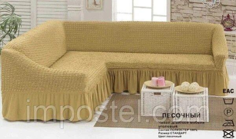 Пісочний Турецька накидка на кутовий диван з оборкою, натяжний чохол на диван