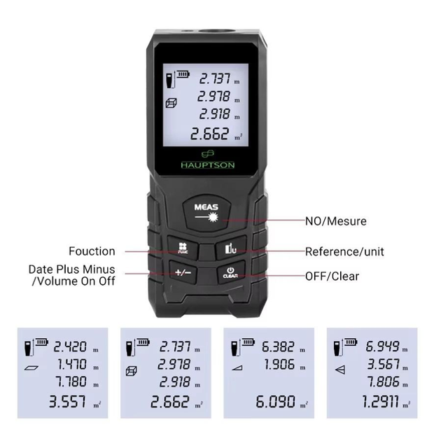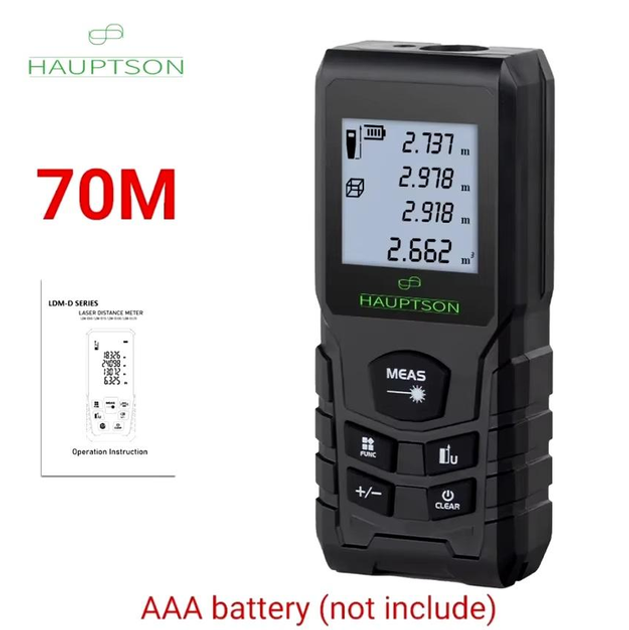 Лазерний далекомір Hauptson 70 підійде для тих, хто потребує точних вимірів на великих відстанях. З максимальним діапазоном до 70 метрів цей інструмент стане в нагоді для різноманітних завдань – від будівництва та ремонту до дизайну інтер'єрів та озеленення.