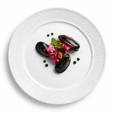 Декоративна фарфорова тарілка з рельєфною поверхнею 25 см