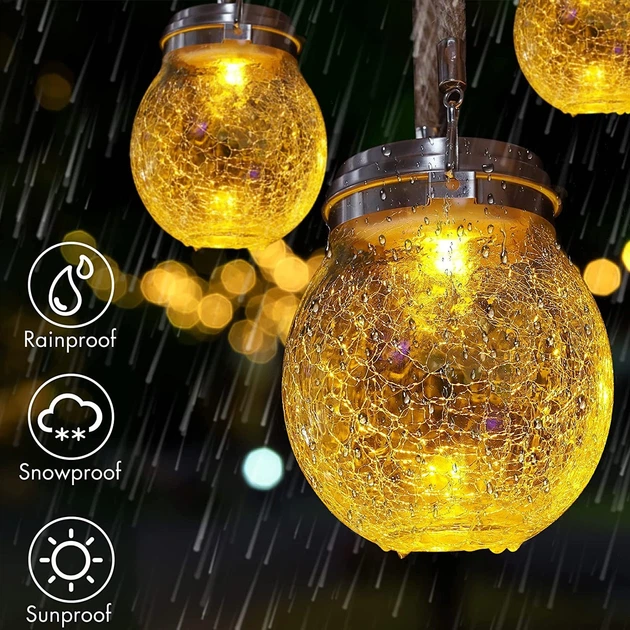 Ці підвісні сонячні світильники чудово підходять для прикраси вашого двору та саду, особливо для весіль, вечірок, днів народження, урочистостей, ювілеїв та Різдва. Завдяки гарному освітленню вони створюють романтичну, розслаблюючу та чудову атмосферу.