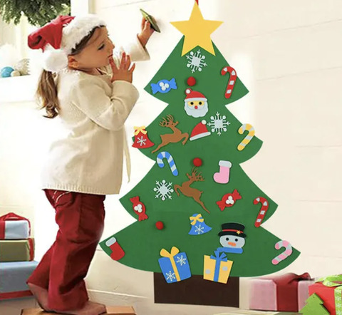 Дитяча новорічна ялинка з іграшками, така як "Chrismas Free" - це чудовий варіант для створення святкового настрою для дітей, особливо якщо ви шукаєте креативний та безпечний спосіб прикрасити дитячу кімнату під час святкування Нового року чи Різдва. Ялинка та іграшки виготовлені з м'якого та безпечного матеріалу – фетру. Фетр безпечний для дітей та досить легкий для монтажу.