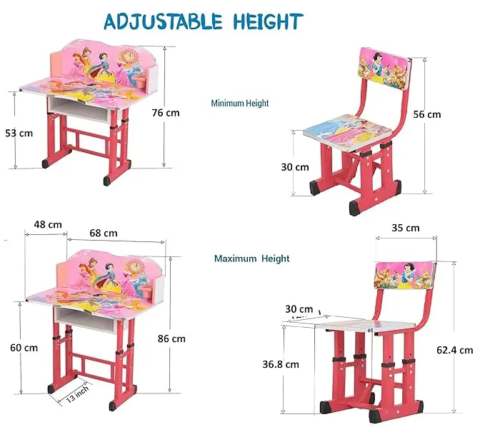 Дитяча парта регульована з принцесами / Письмовий стіл та стілець з регульованою висотою