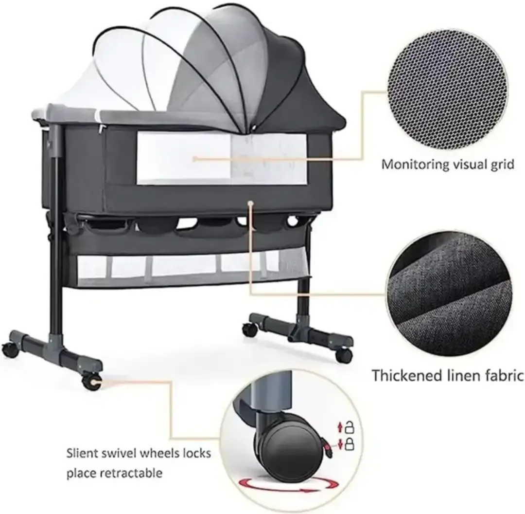 Сучасне багатофункціональне ліжечко створене для комфортного та безпечного сну малюка з перших днів життя. Міцна металева рама в поєднанні з м'якими матеріалами, що дихають, забезпечує затишок, підтримку і правильний мікроклімат.