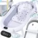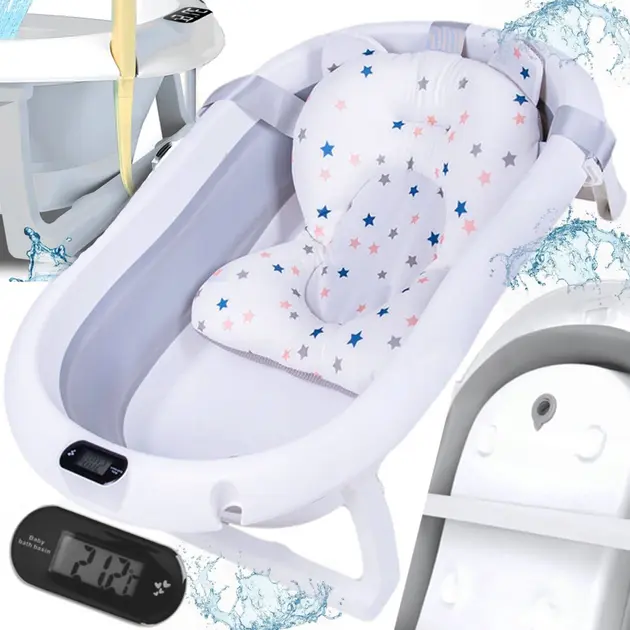 Ванна призначена для купання дітей від народження. Складна конструкція дозволяє зберігати виріб у складеному вигляді в обмеженому просторі. Виготовлена з поліпропілену та термопластичного еластомеру, дозволених для контакту зі шкірою немовлят. Оснащена елементами для використання вдома або у поїздках